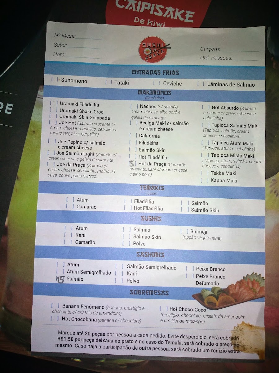 Sushi da Praca - Culinaria Japonesa Taquara Menu